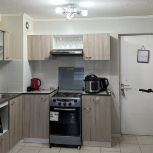 Distribución: 1 dormitorio con walk in closet y ventanas termo panel, 1 baño independiente, cocina totalmente equipada, aislación térmica EIFS, cortinas roller en todas las ventanas.