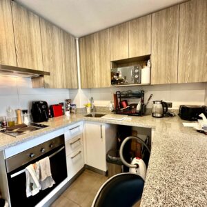 Cocina equipada con horno y encimera eléctrica. Incluye estacionamiento, bodega y bicicletero.